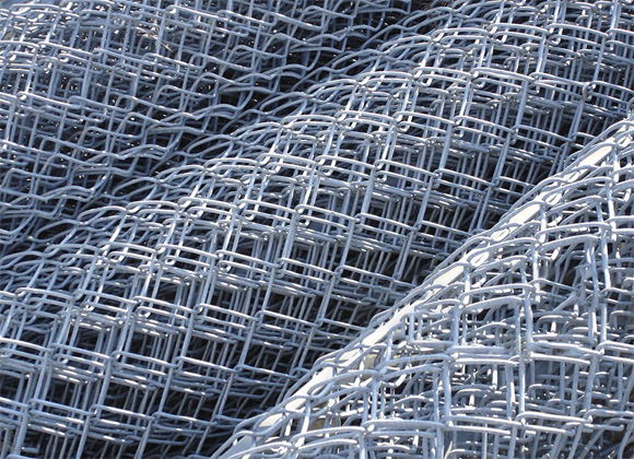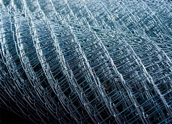 from interconnected metal wires, typically coated with galvanized zinc to prevent rusting.
